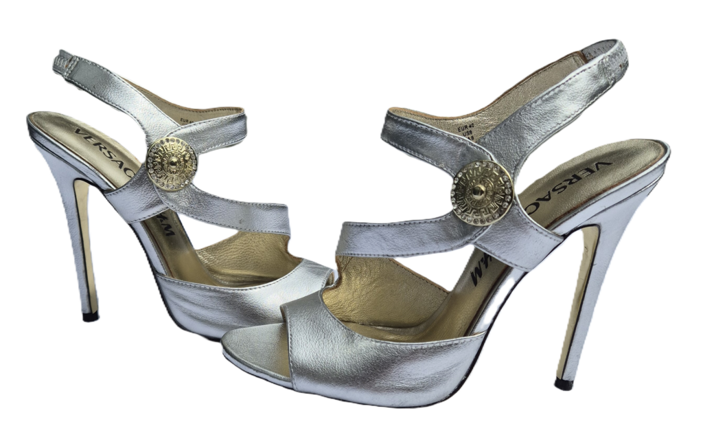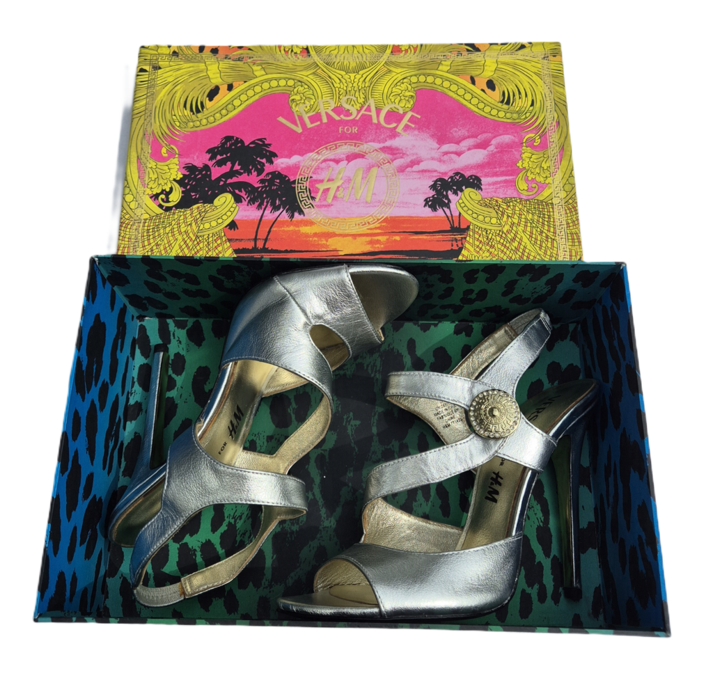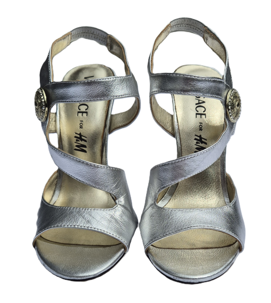 Mooie zilverkleurige Versace schoenen. Deze schoenen zijn door Versace ontworpen voor H&M en in beperkte oplage gemaakt. De schoenen die wij aanbieden zijn nauwelijks gebruikt en zijn als nieuw.