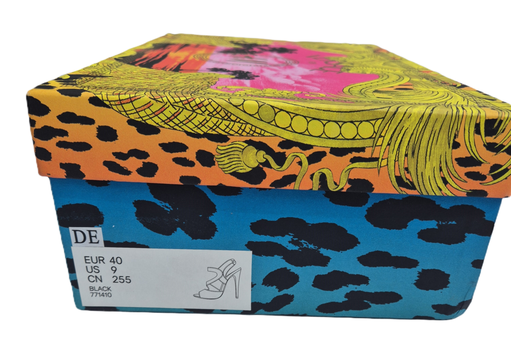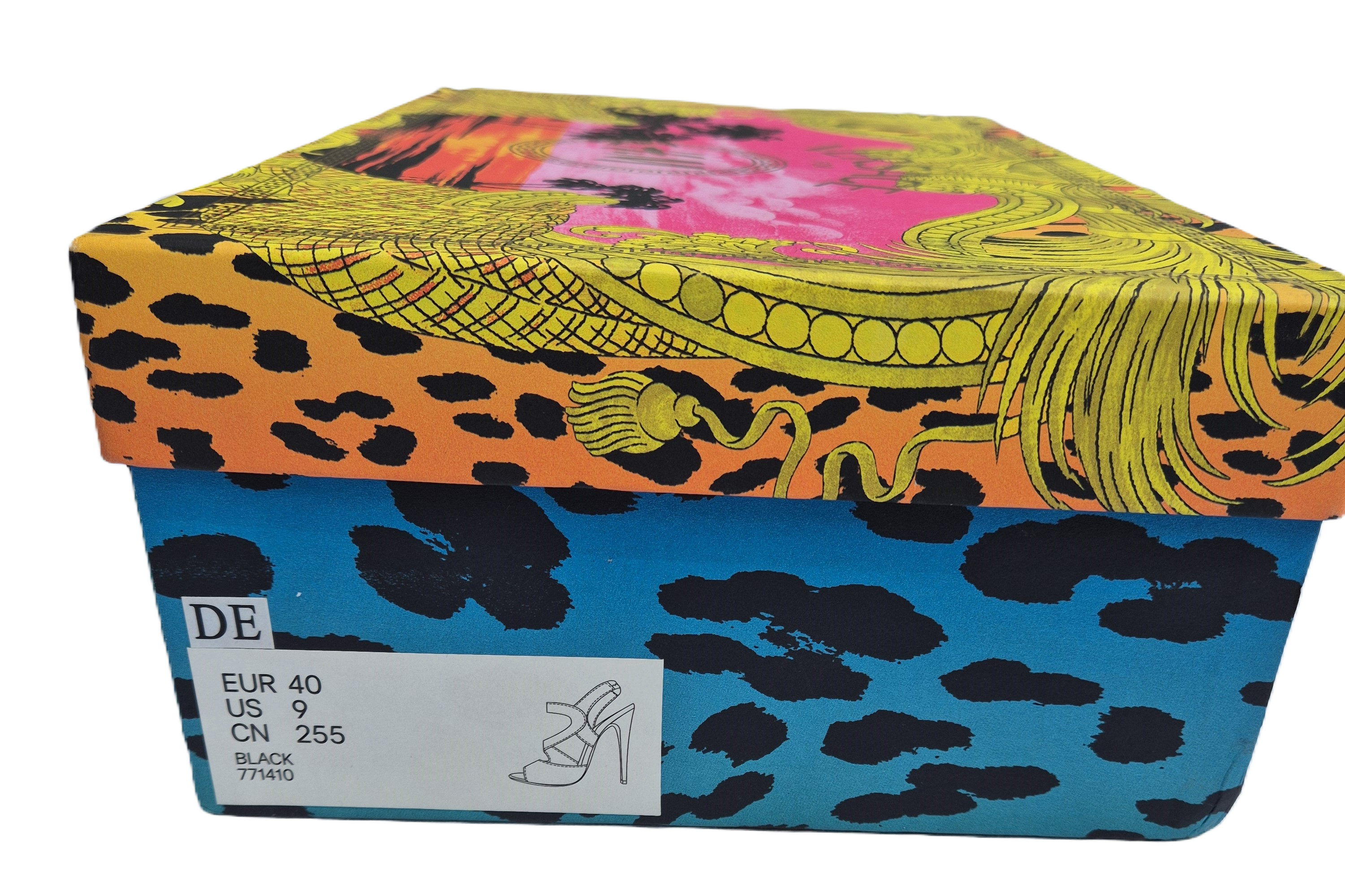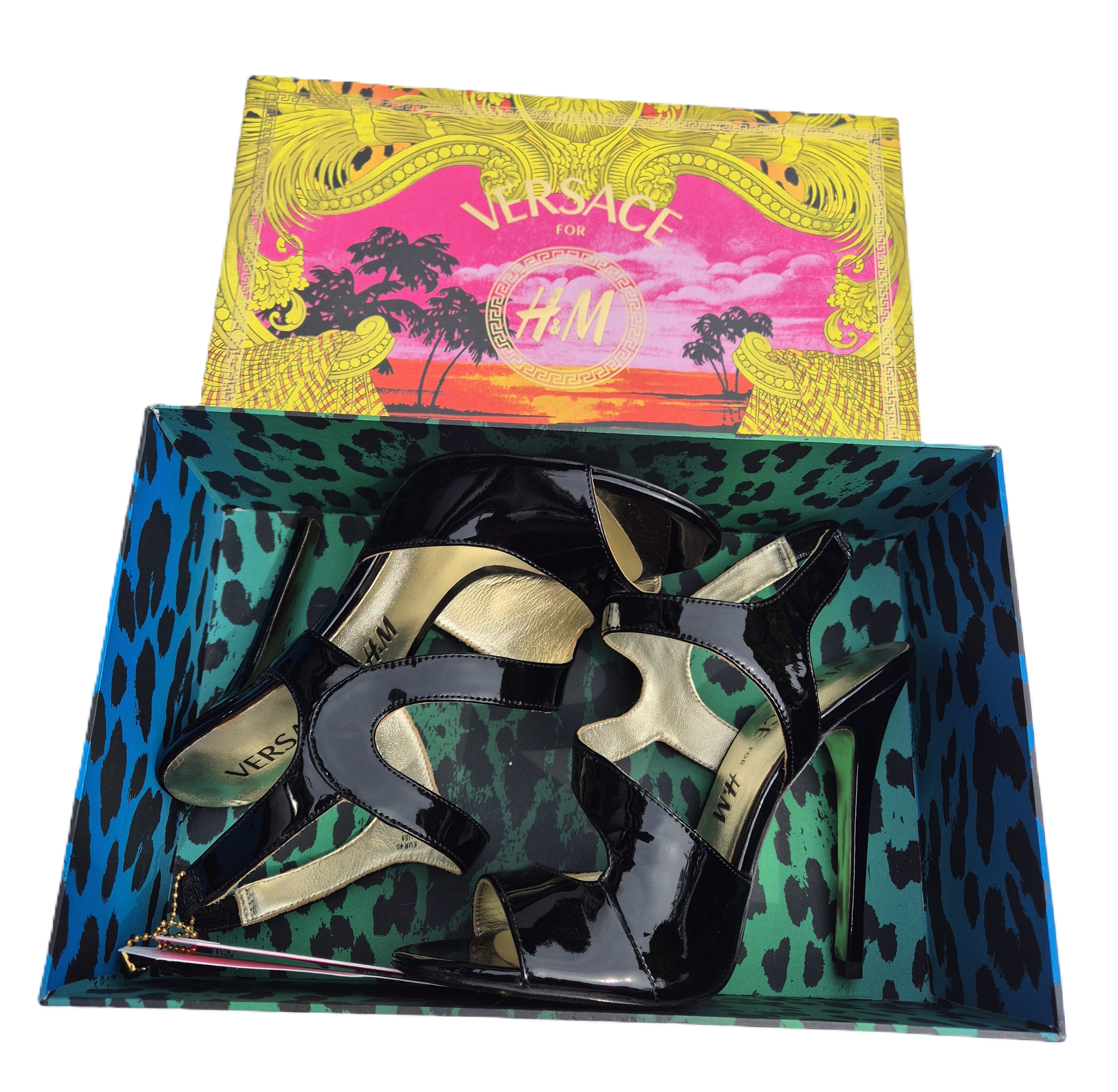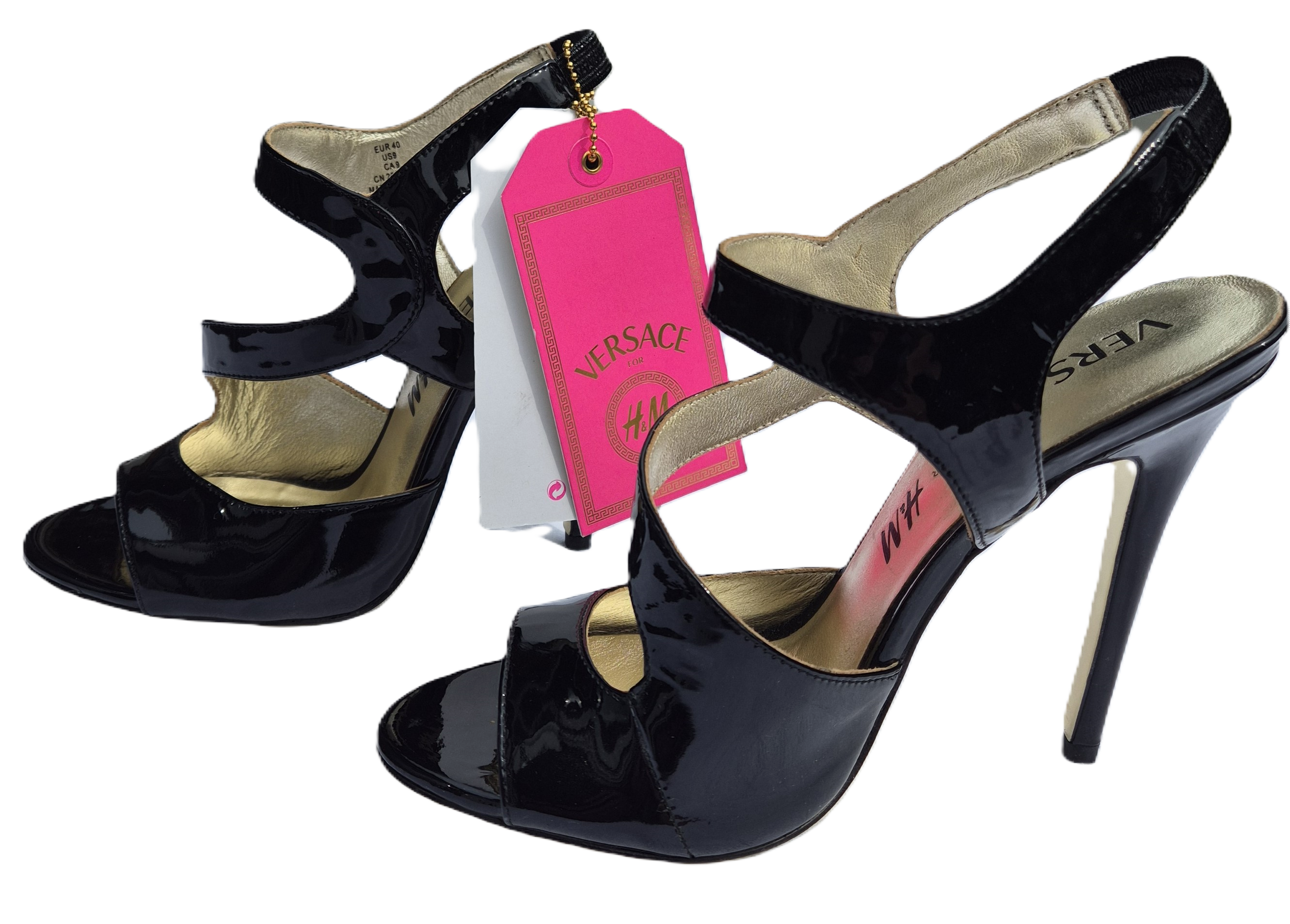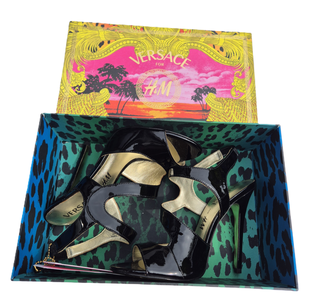 Mooie zwarte hoge Versace schoenen maat 40. Deze schoenen zijn door Versace ontworpen voor H&M. De schoenen die wij aanbieden zijn nooit gebruikt en zijn beschikbaar in de originele doos.